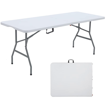 שולחן מתקפל פלסטיק נייד מודרני 6ft עם ידית לשימוש חיצוני במסיבות פיקניות מחנאות פארקים או חצרות